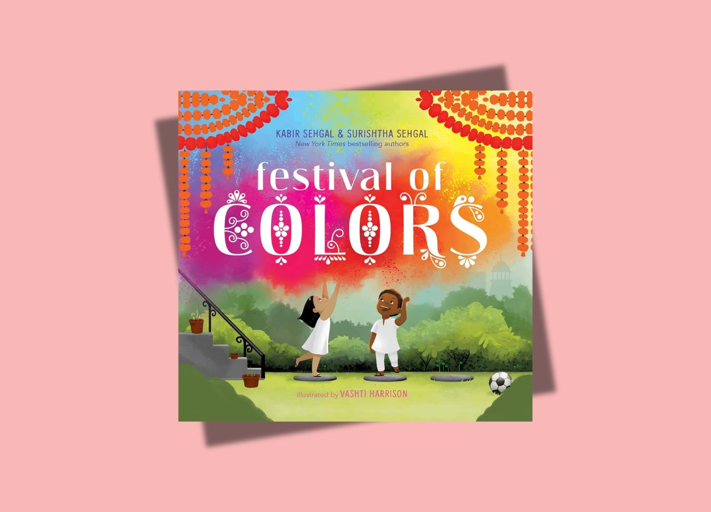In the board book Festival of Colors by Kabir Sehgal and Surishtha Sehgal children press dried hibiscus and orchid flowers into colorful powders.